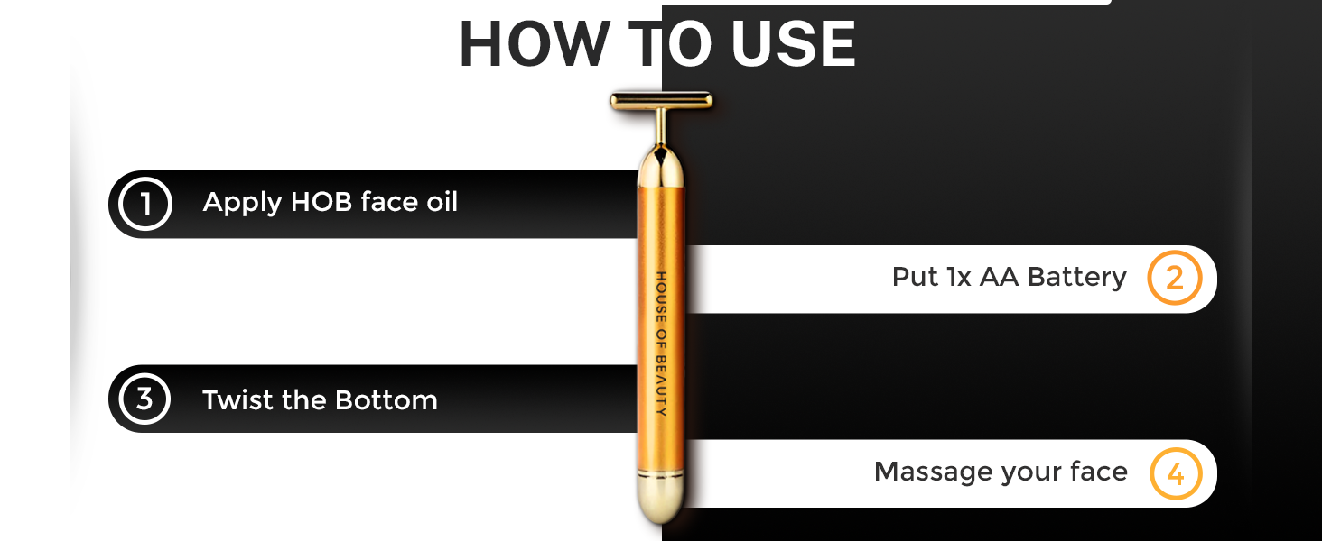 The 24k Face Massager vibrates 6,000 times a minute (micro vibration) which gives your facial muscles the right amount of stimulation in order to get a firming effect to improve the skin.