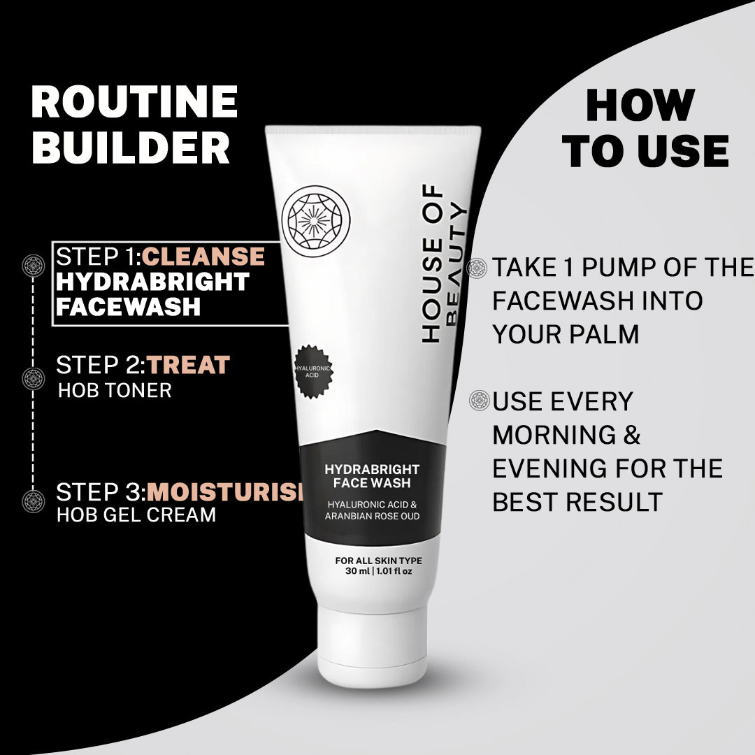 House of Beauty's Hydra Bright face wash is a face brightening, hydrating and deep pore cleansing face wash for all skin types. A must have in your skincare routine for men & women.