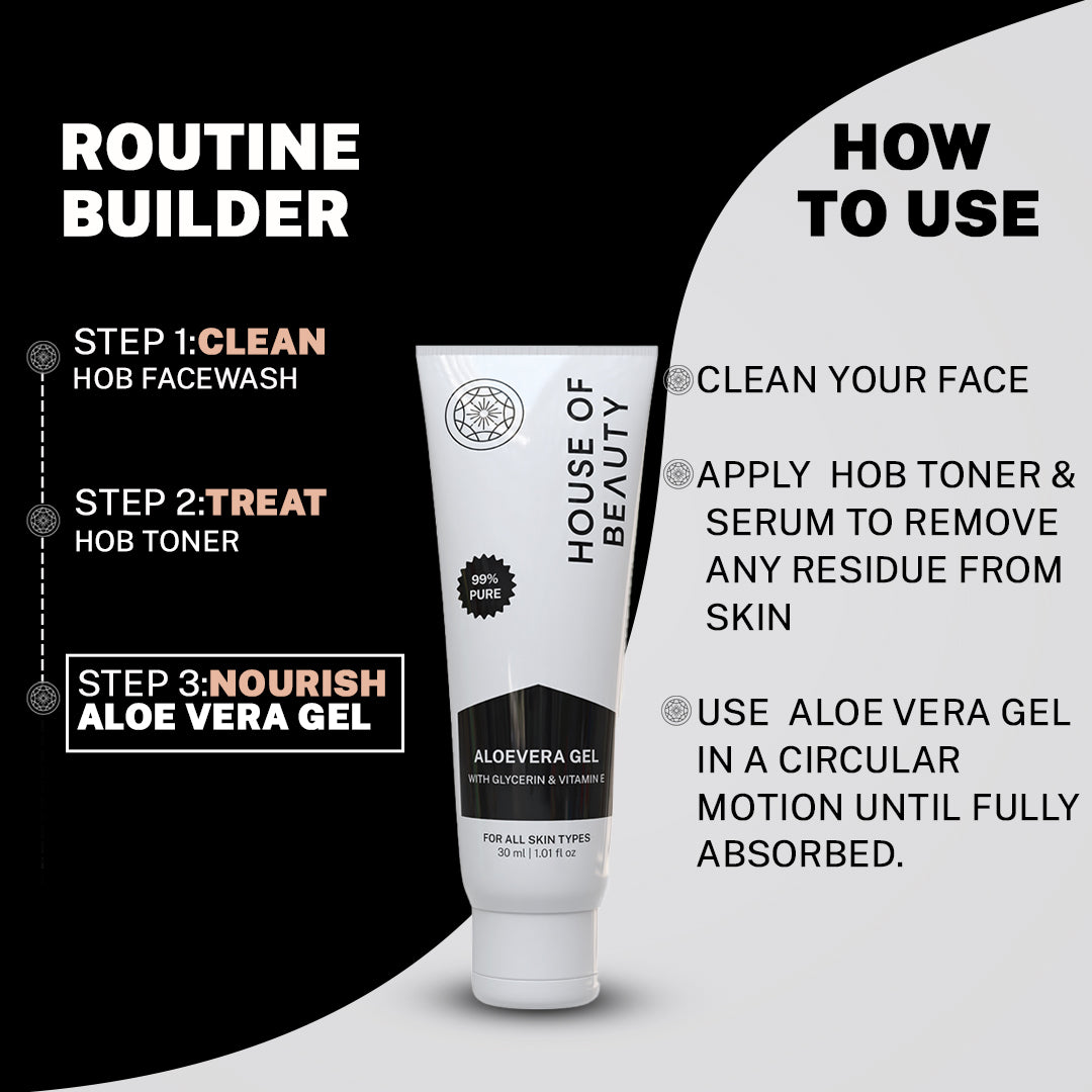 House of Beauty’s Aloe-Vera gel contains the super ingredient - Pure Aloe Vera which boosts collagen production in skin, tackles skin issues like skin irritation, acne, skin redness, insect bites, abrasions, skin ageing and is even beneficial in Eczema and Psoriasis. This gel with its antioxidant and antibacterial properties helps in skin inflammation and leaves it soft, hydrated and moisturised. Can be stored in the refrigerator for an extra cooling effect.