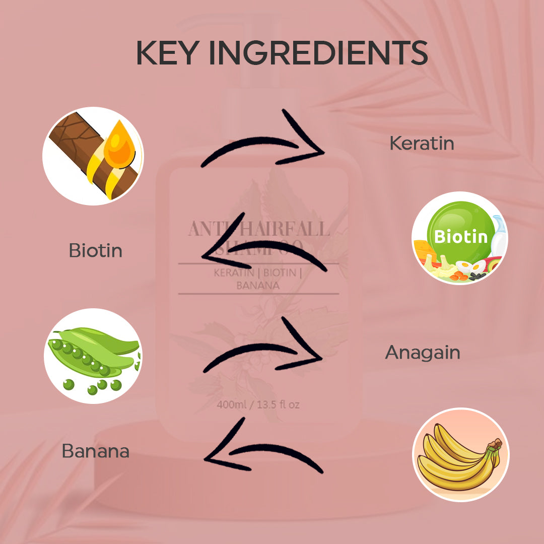 • Anti Hairfall Shampoo- Keratin, Biotin, Anagain, Banana, Lactic acid