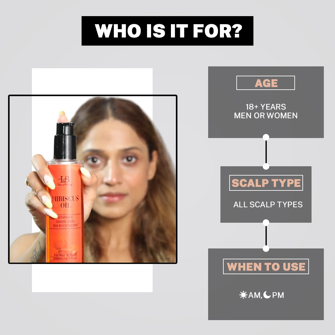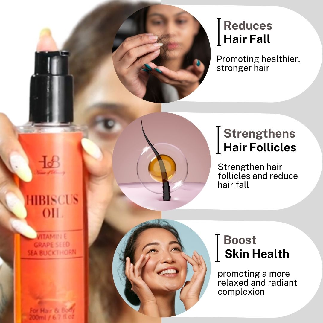Introducing our exquisite "Hibiscus Hair and Body Oil," a harmonious blend of the finest natural ingredients, including Vitamin E, Grapeseed, Argan, Aloe Vera, and Sea Buckthorn. This multi-benefit oil is specially formulated to nourish, rejuvenate, and enhance the beauty of both your hair and skin, providing you with an unparalleled pampering experience.