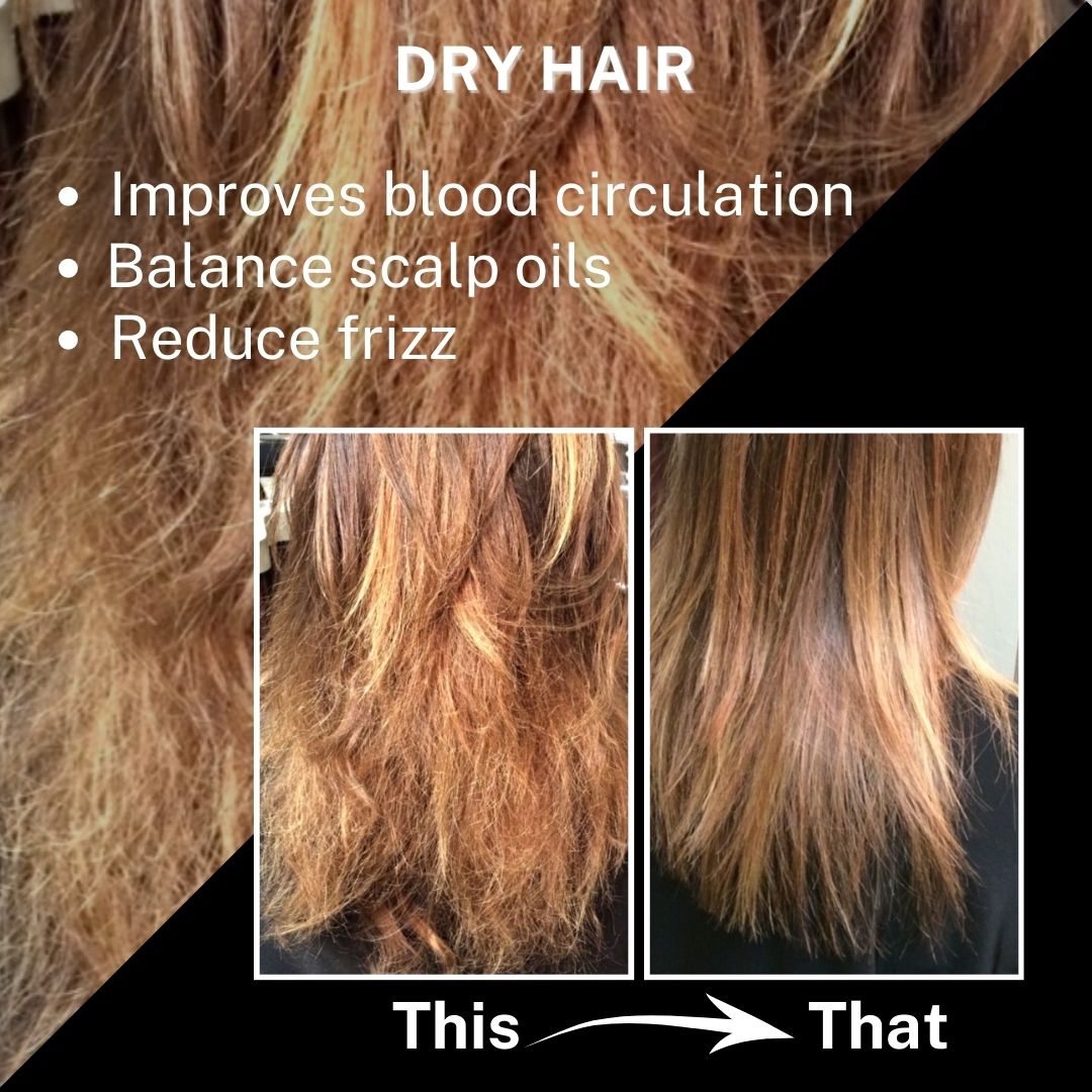 • Boosts hair growth: Increases blood circulation which in turn improves hair growth. Reducing hair loss. Deeply moisturizes hair ends.