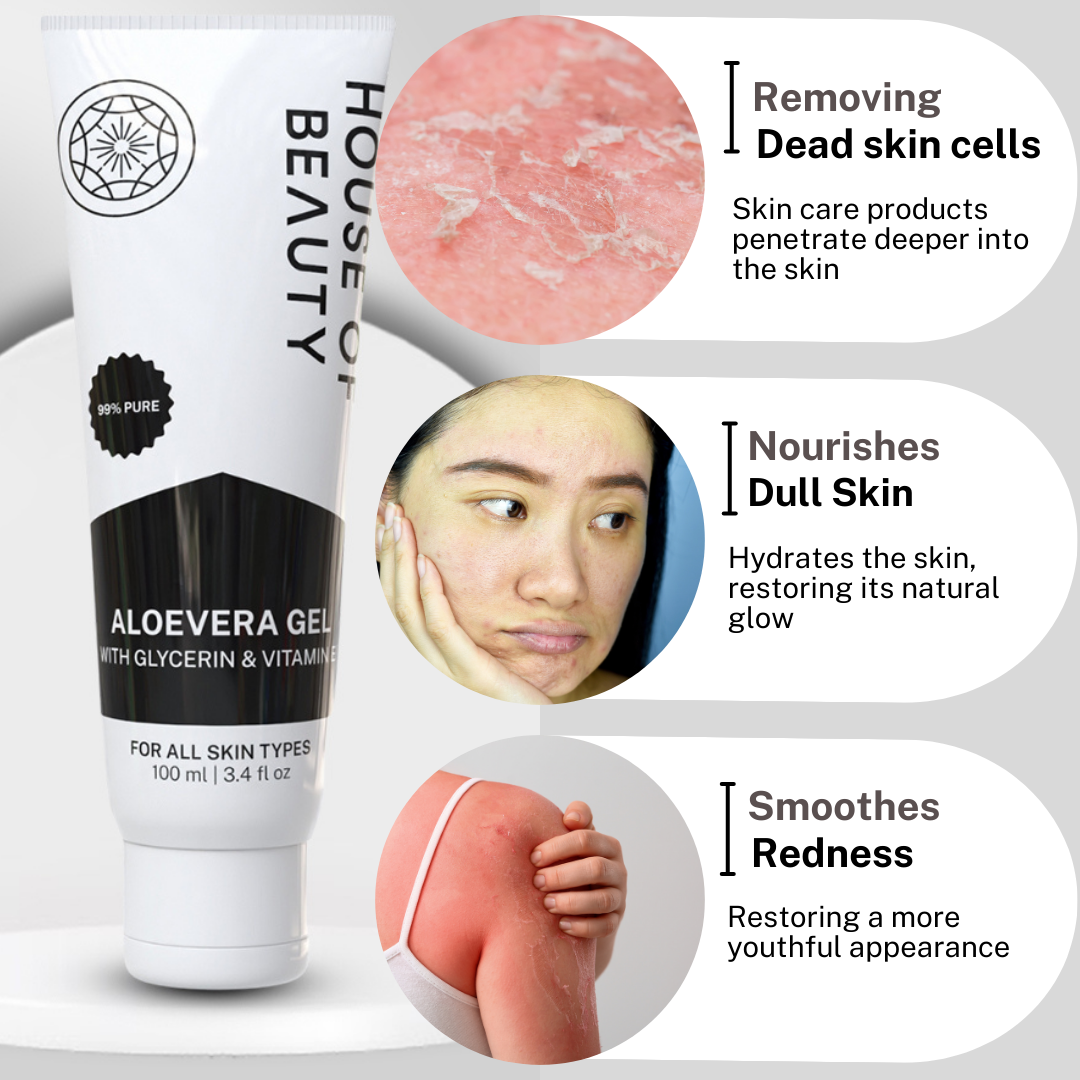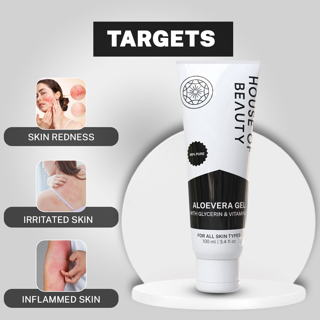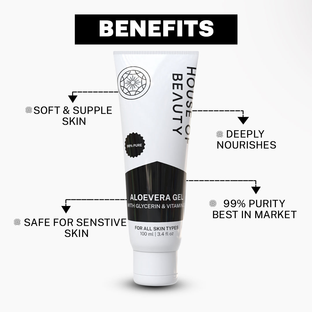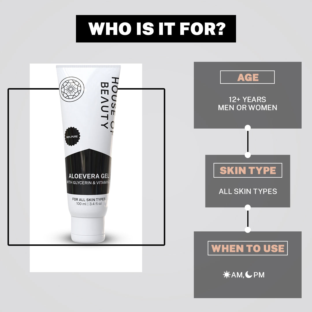 House of Beauty’s Aloe-Vera gel contains the super ingredient - Pure Aloe Vera which boosts collagen production in skin, tackles skin issues like skin irritation, acne, skin redness, insect bites, abrasions, skin ageing and is even beneficial in Eczema and Psoriasis. This gel with its antioxidant and antibacterial properties helps in skin inflammation and leaves it soft, hydrated and moisturised. Can be stored in the refrigerator for an extra cooling effect.
